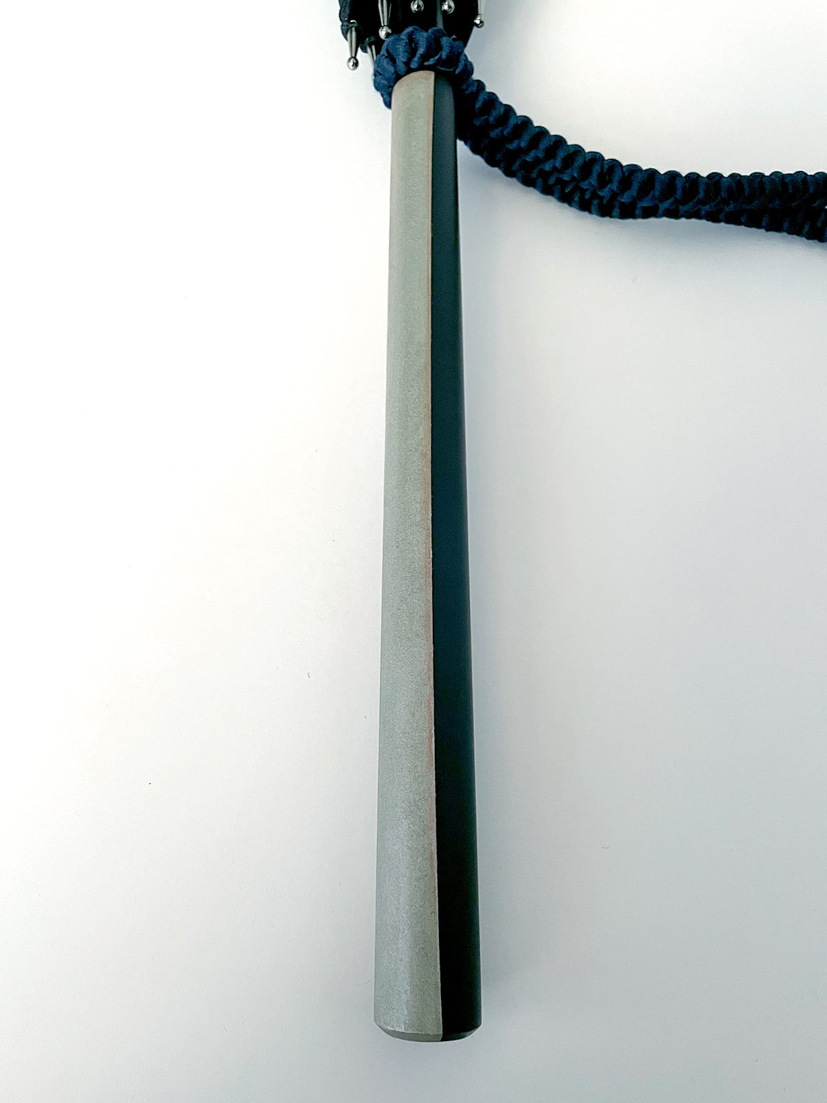 A hand-blown glass ball is used for the clasp