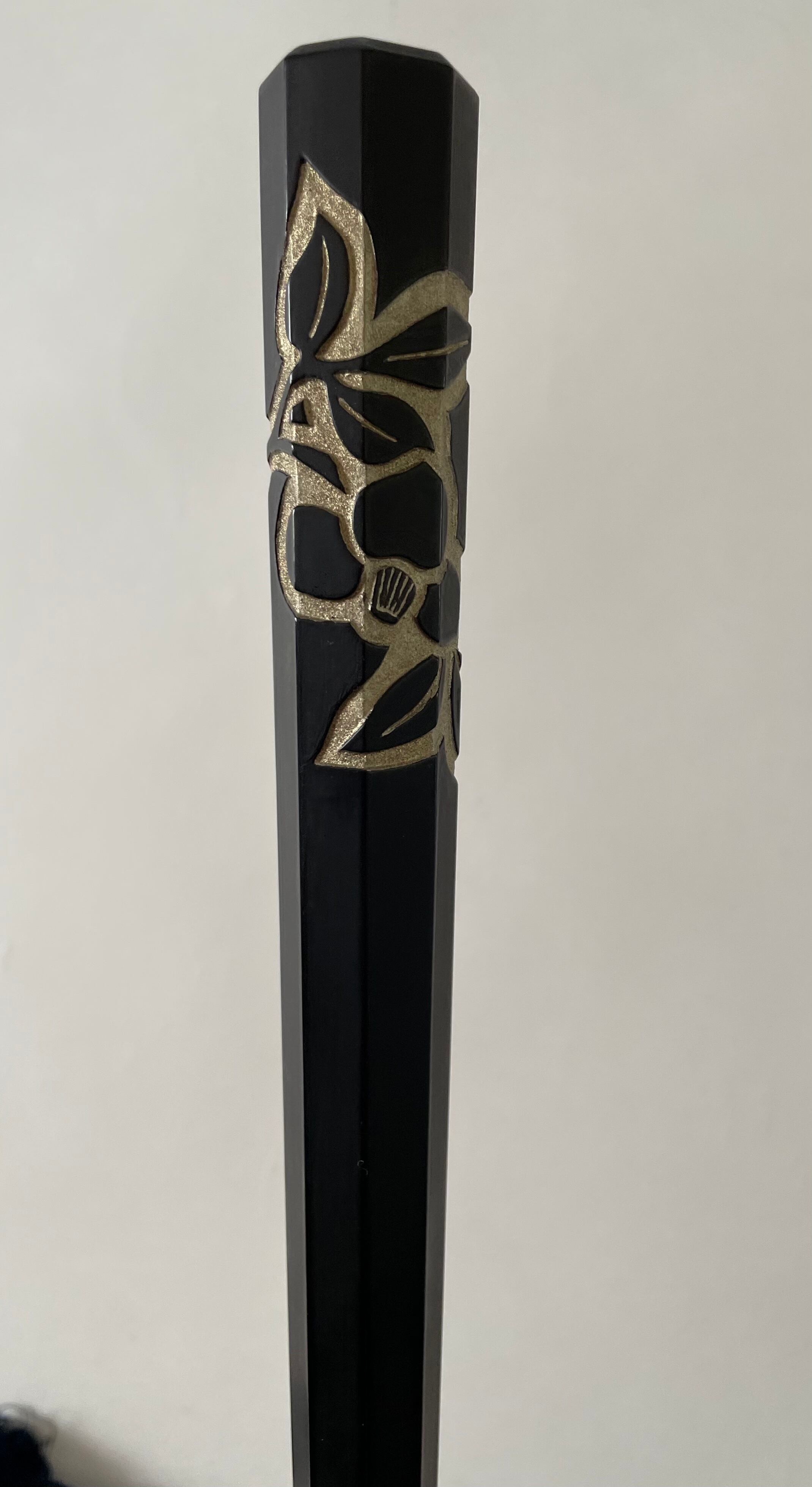 木製の持ち手は木工芸家富沢麻子作漆で加工しています